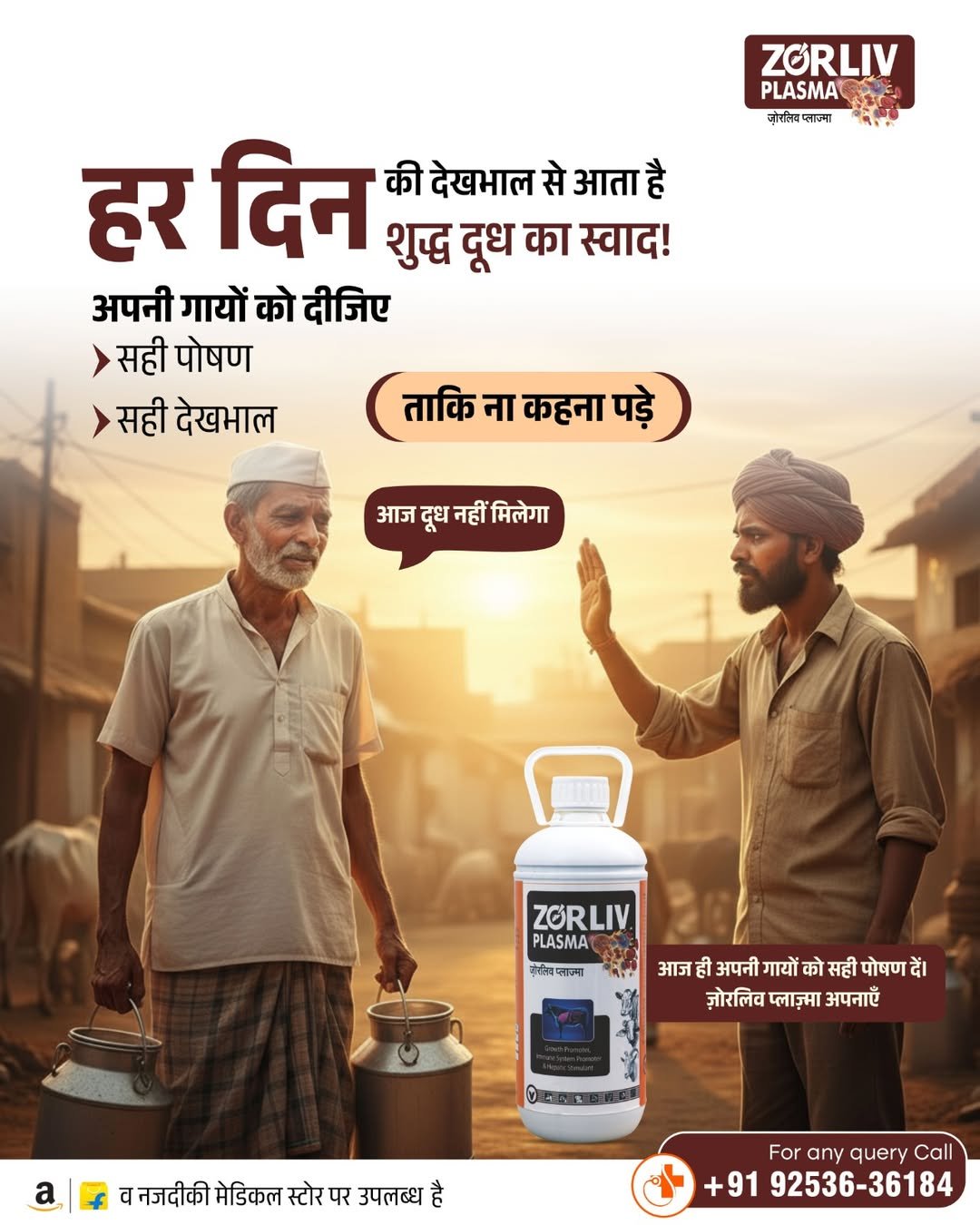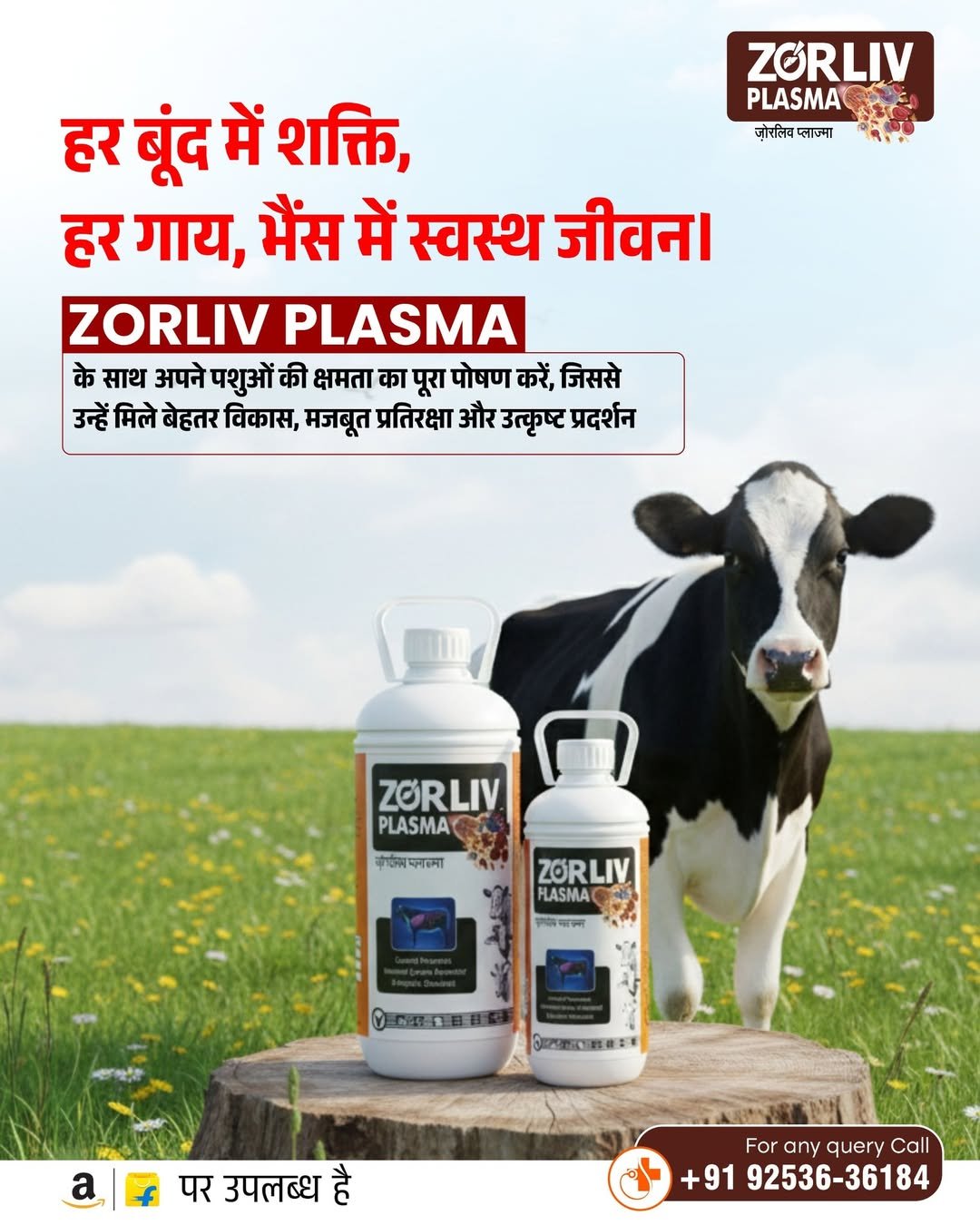 ज़ॉरलिव प्लाज़्मा एक शक्तिशाली Liver Growth Promoter और Plasma Tonic (Blood Booster) है, जो पशुओं की प्रतिरोधक क्षमता बढ़ाए, लीवर को मज़बूत करे और तेज़, स्वस्थ व संतुलित बॉडी ग्रोथ दे। हर रोज़ बेहतर प्रदर्शन के लिए एक भरोसेमंद फ़ॉर्मूला।