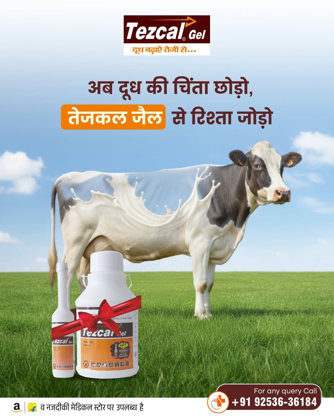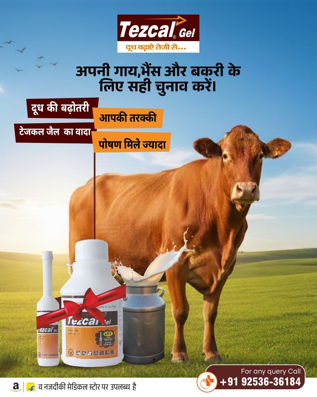 Tezcal Gel एक संपूर्ण पोषक और ऊर्जा सप्लीमेंट है, पशुओं के ब्याने के बाद दूध को पिक लेवल पर लाने में मदद करता है। जो पशुओं को तुरंत ताकत, तेज़ रिकवरी और बेहतर स्वास्थ्य प्रदान करता है। कमज़ोरी, तनाव और थकावट में तुरंत असर — हर पशुपालक का विश्वसनीय सहायक।