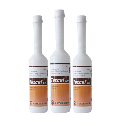 ब्याने के बाद पशु के दूध को पिक लेवल पर लाने में मदद करता है।Tezcal Gel 1L पशुओं को कैल्शियम, विटामिन D₃ और ऊर्जा देकर उनकी हड्डियाँ मजबूत और स्वास्थ्य बेहतर करता है।